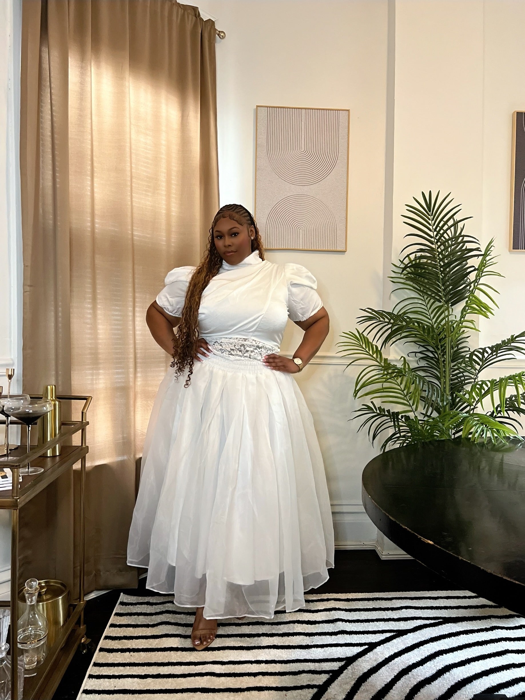 Puff Short Sleeve Mock Neck Satin Crop Blouse & Lace Spaghetti Strap Top Set