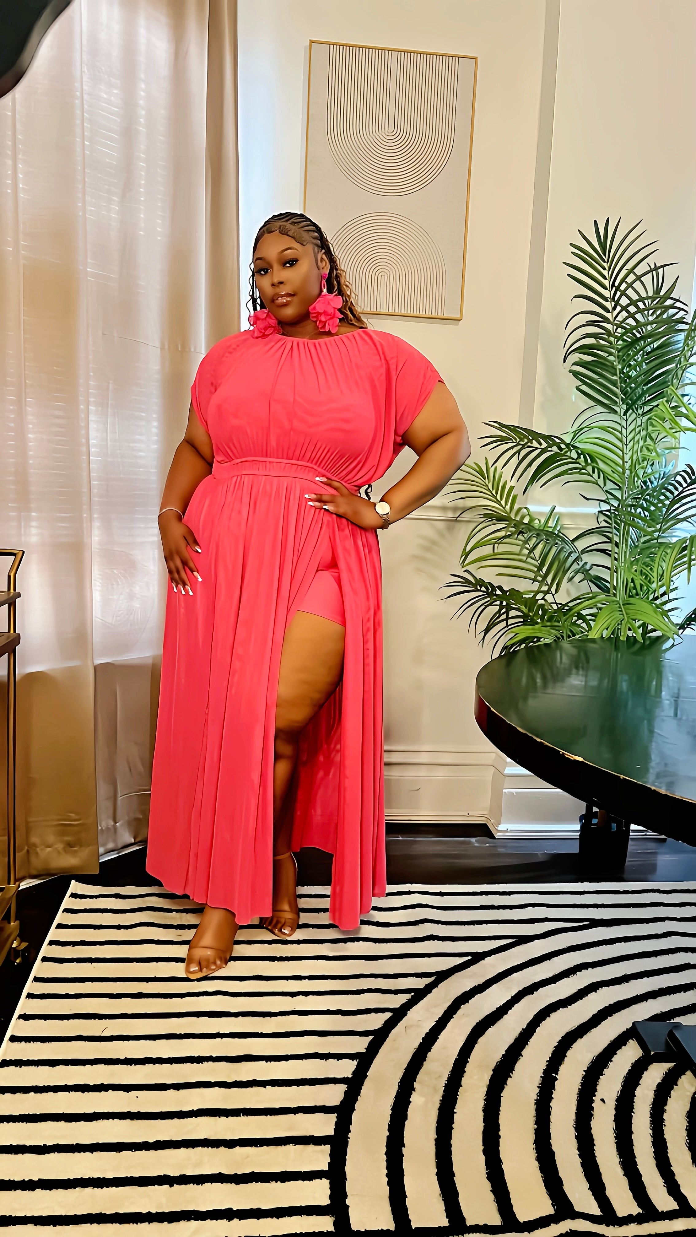 Two Front Slits Goddess Maxi Dress with Top & Short